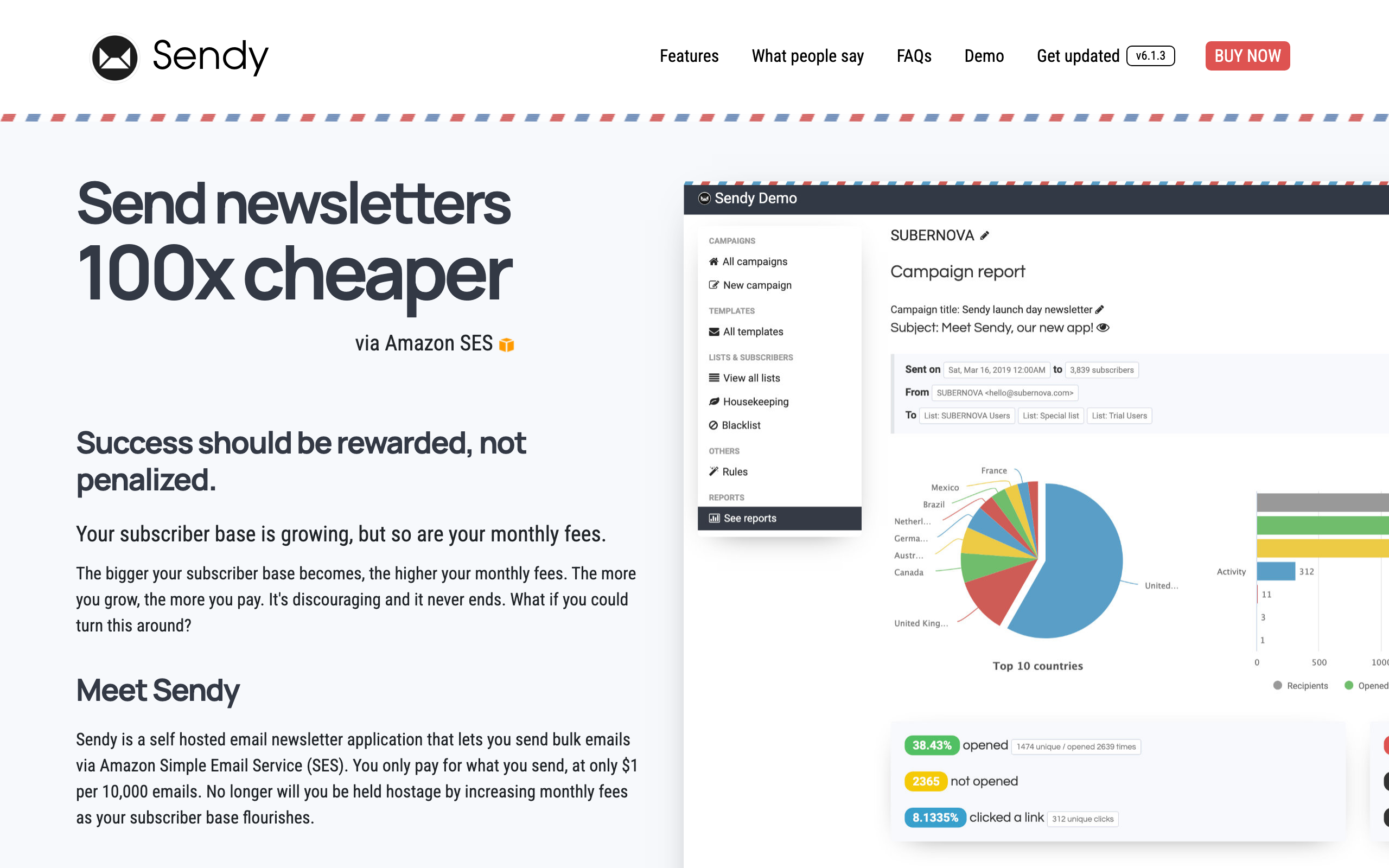 20. Sendy - Cheapest Long-Term Newsletter Option